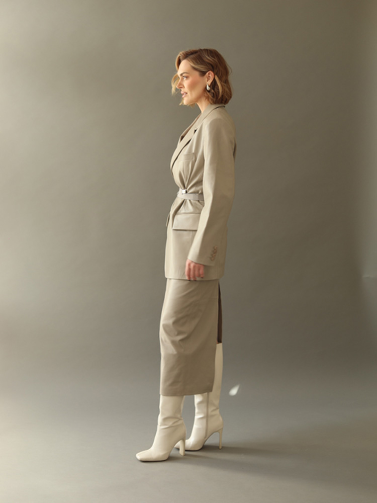 U novoj “WE DO CLASSICS” kolekciji po prvi put predstavljamo naš blejzer – lagano naglašeniji u ramenima, strukirane forme, uz uklonjivi pojas koji zaokružuje priču. Jak je, snažan, i sirovinom i formom, i pruža isto takav osjećaj kada se nosi.